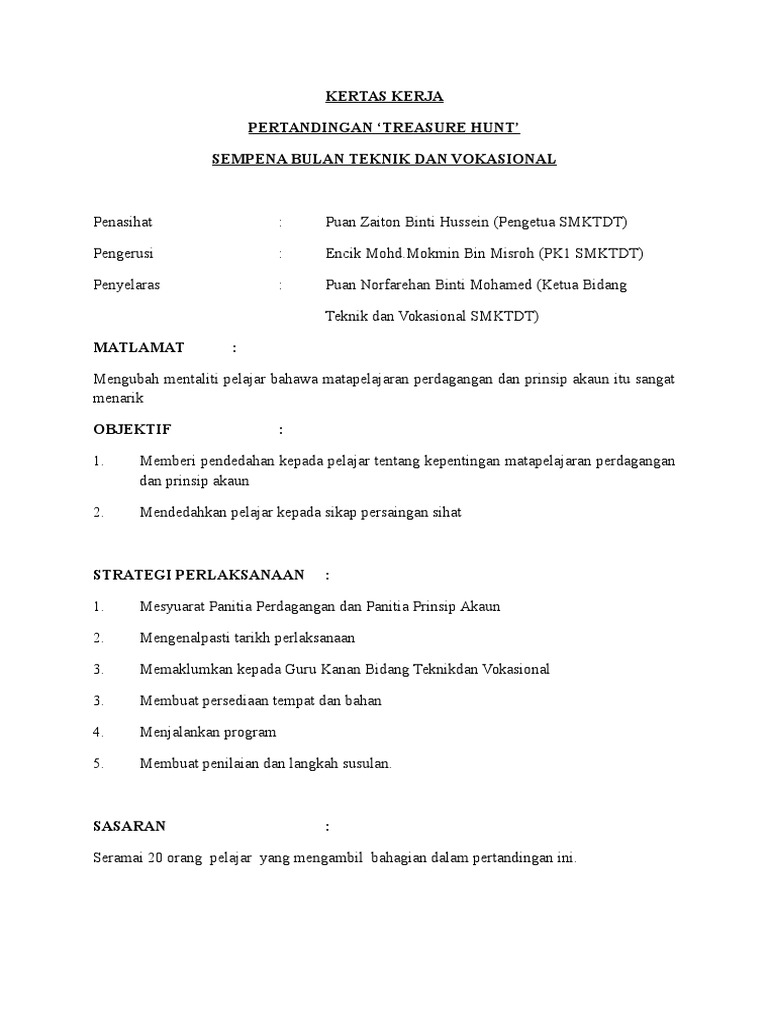 Kertas Kerja Pertandingan Treasure Hunt Pdf